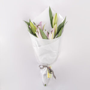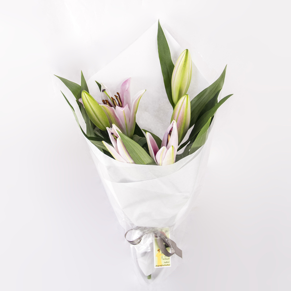 هل تبحث عن الهدية المثالية للتعبير عن تقديرك؟ هذه الباقة الجميلة من الزنابق الوردية والبيضاء الرقيقة، بأوراقها الخضراء النضرة وغلافها الأنيق، خيار رائع. إنها طريقة بسيطة ومدروسة لشكر معلم مميز على كل ما يقدم