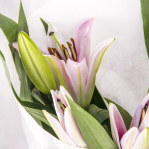 Looking for the perfect gift to show your appreciation? This beautiful bouquet of delicate pink and white lilies, with their fresh green leaves and elegant wrapping, is a great choice. It’s a simple yet thoughtful way to thank a special teacher for all they do.