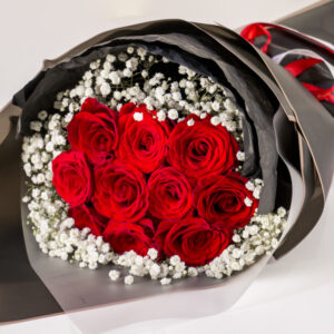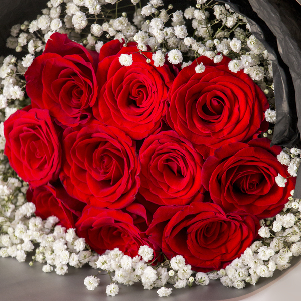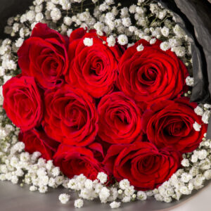 This bouquet features a dozen premium roses framed by airy baby’s breath, all tucked into a sleek, modern wrap that lets the colors truly pop. It’s the perfect blend of traditional sentiment and contemporary style.